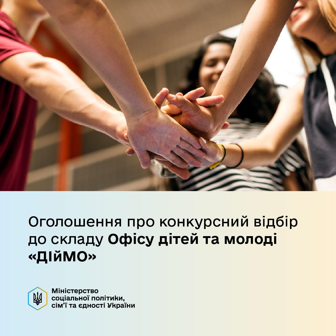 Мінсоцполітики запрошує молодих людей віком від 14 до 35 років долучитися до "ДійМО" - Офіс дітей та молоді — консультативно-дорадчого органу при Міністерстві.
